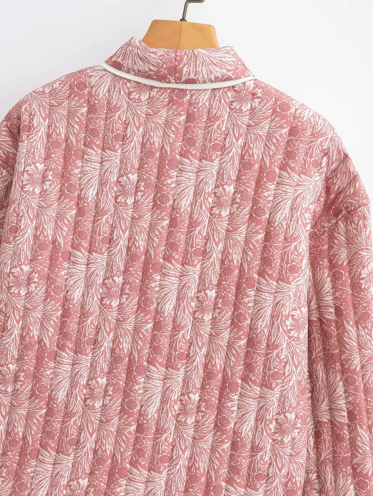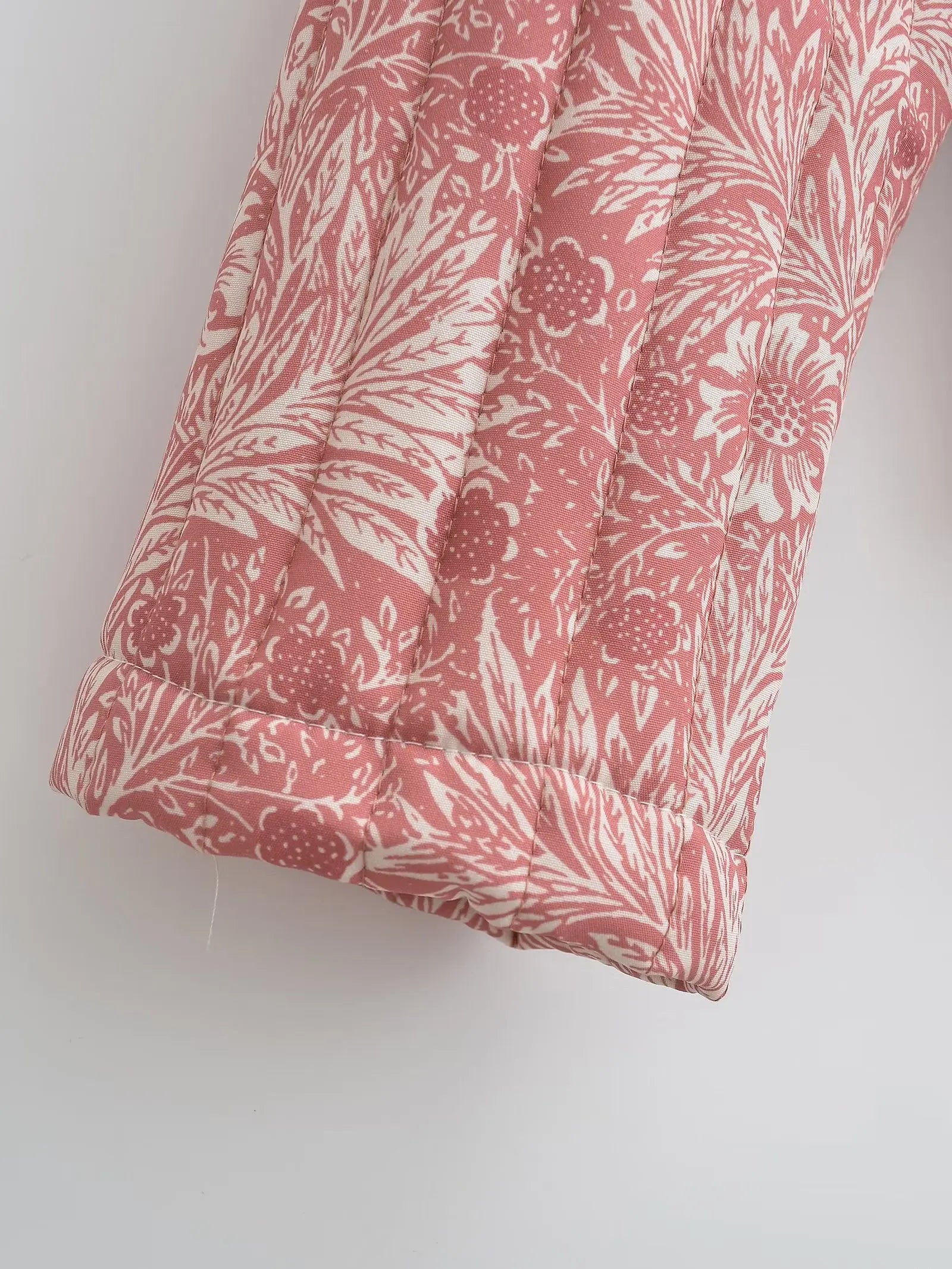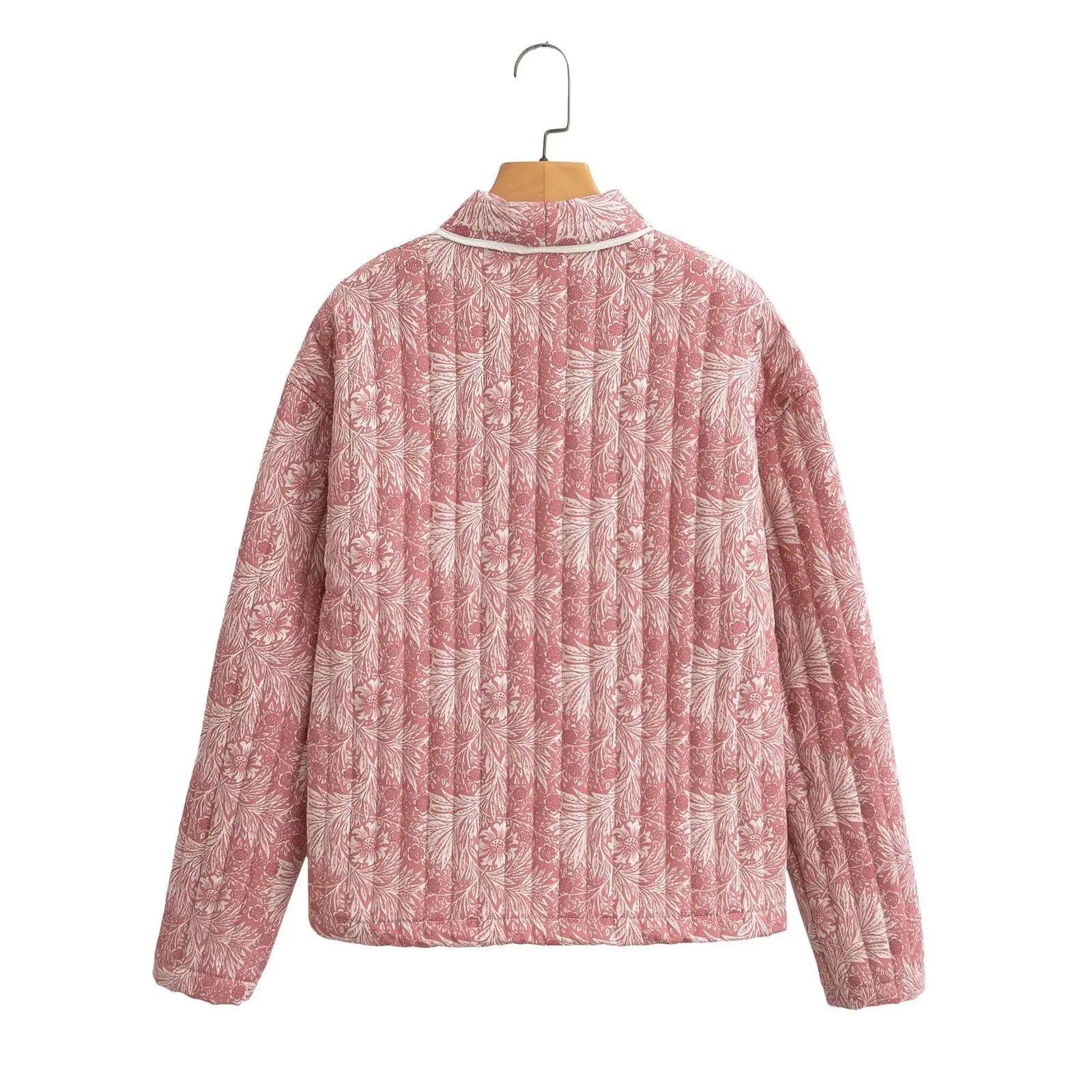 Light Pink Flower Print Lapel Quilted Coat